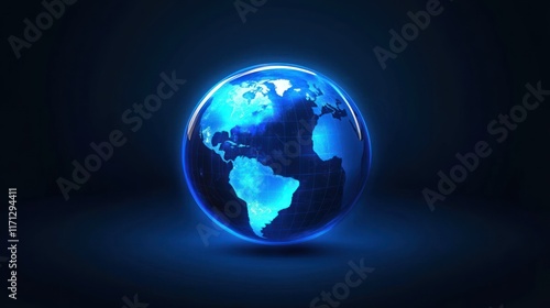 Fototapeta premium A glowing blue globe representing Earth with a dark background, symbolizing...