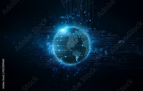 © joeycheung, Obraz premium A glowing blue globe surrounded by digital lines.