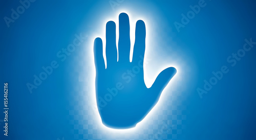 © Ikhbal, Obraz premium A glowing blue hand, palm facing forward, against a gradient background.