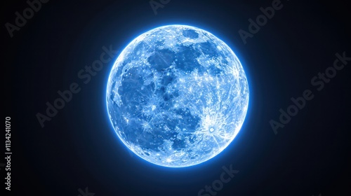 Obraz premium A glowing blue moon against a dark backdrop showcasing its craters and...