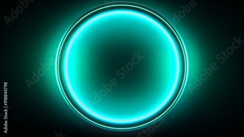 Fototapeta premium A glowing circular shape radiates a neon blue light against a dark backdrop,...