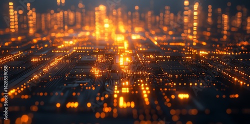 © Guruh, Fototapeta premium A glowing 3D rendered cryptocurrency network expanding
