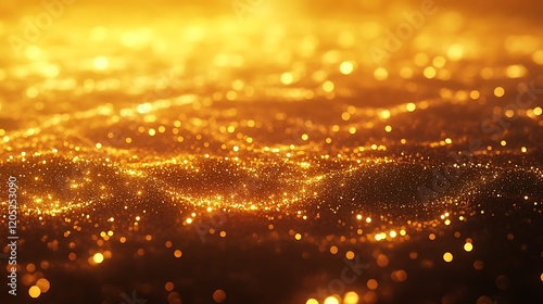 © Thirakun, Naklejka premium A glowing desert landscape with golden sands shimmering at sunset