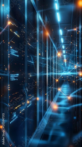 Obraz premium 54. A glowing digital matrix with interwoven connections, signifying strong, fast, and secure hosting services