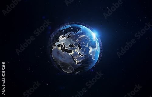 © joeycheung, Obraz premium A glowing, digital rendering of the Earth with a network of lines and points.