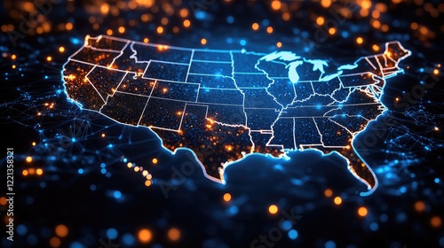 Obraz premium A glowing, digital representation of the United States map,
