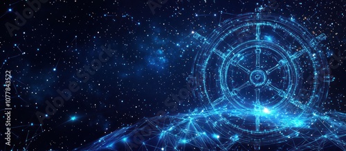 Obraz premium A glowing, digital vault wheel, set against a backdrop of stars, representing security, technology, and the future.