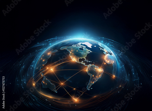 Fototapeta premium A glowing Earth, encircled by a network of interconnected lines, representing...