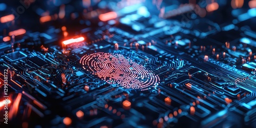 © Pech, Fototapeta premium A glowing fingerprint scanner unlocking an AI-powered neural processor.