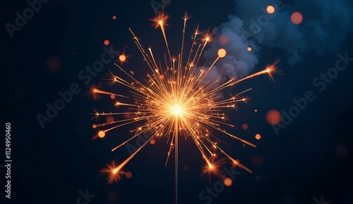 Fototapeta premium A glowing firework sparkler in mid-spark,