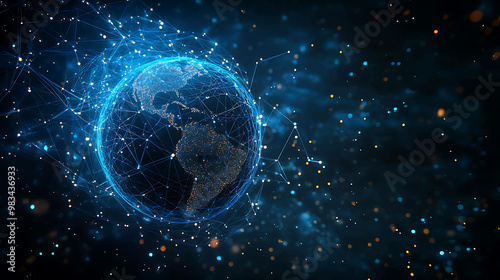 Obraz premium A glowing, futuristic digital representation of Earth with network connections.