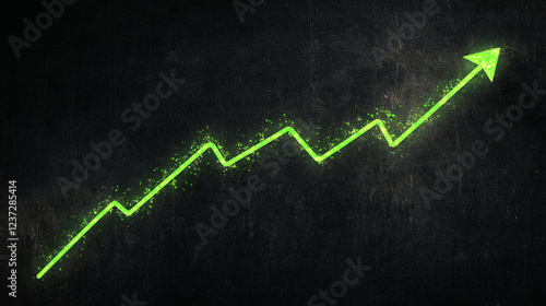 Naklejka premium A glowing green zigzag line with an upward arrow drawn on a dark chalkboard representing financial growth and positive trends