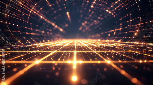 © Fiaz Gulab , Obraz premium A glowing grid pattern extending infinitely in a dark void, creating an immersive sense depth and perspective.
