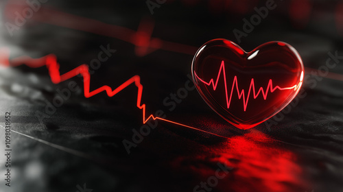 Fototapeta premium A glowing heart shape with an electrocardiogram line pulsating rhythmically...
