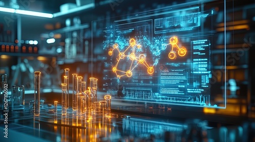 © WrongWay, Obraz premium A glowing holographic interface displaying molecular models in a high-tech lab, futuristic and innovative