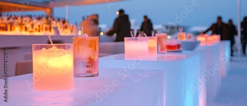 Fototapeta premium A glowing ice bar sculpted from clear ice, with holiday cocktails and frosty aesthetics