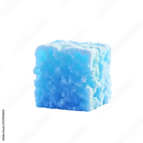 Fototapeta premium A glowing ice cube surrounded by fluffy white snow clouds isolated on transparent background