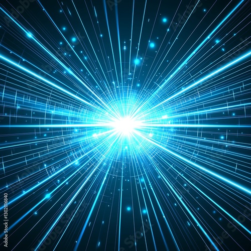 © Somphong, Fototapeta premium A glowing 40% in a soft, neon blue hue, set against an intricate tech-inspired grid, with flickering digital elements creating a dynamic backdrop.