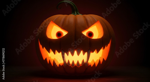 Fototapeta premium A glowing jack-o'-lantern with a menacing grin and glowing eyes, perfect for...