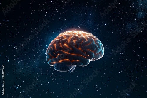 Obraz premium A glowing, magical brain floating in a starry void, surrounded by swirling...