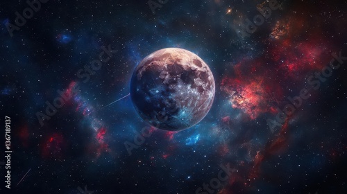 Fototapeta premium A Glowing Moon Surrounded by Colorful Nebula and Stars in the Vast Universe