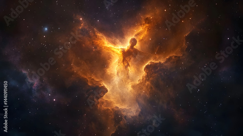 Fototapeta premium A glowing nebula forming the shape of an ancient cosmic deity.