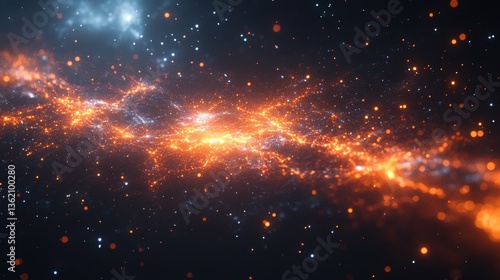 Fototapeta premium A glowing nebula stretches across a dark expanse of space