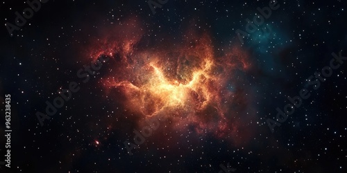 © kwanchaift, Fototapeta premium A glowing nebula surrounded by distant stars in deep space.