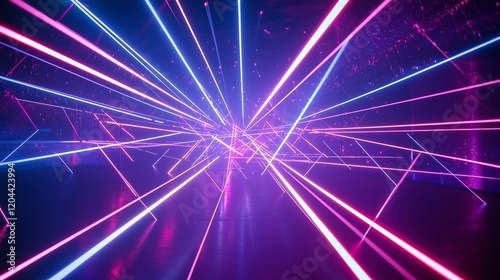 © Jasim, Naklejka premium A glowing network vibrant laser lines crossing dynamically on a dark background symbolizing futuristic technology