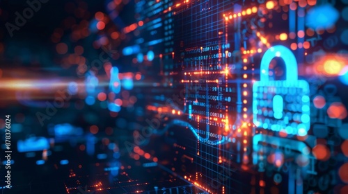 Obraz premium A glowing padlock symbol on a digital circuit board, representing...