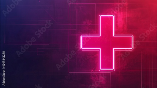 Fototapeta premium A glowing pink cross symbol against a dark gradient background, conveying a...