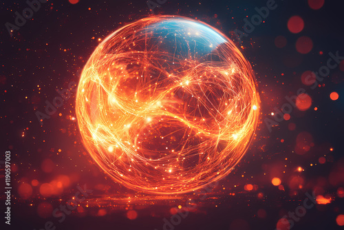 © Helen, Obraz premium A glowing sphere with intertwining lines of light symbolizing connection. An abstract representation of unity