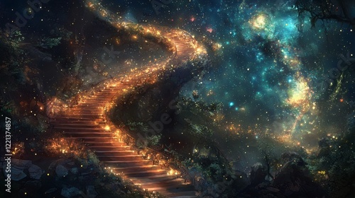 © TJAYZ, Obraz premium 140. A glowing spiral staircase ascending into an ethereal celestial realm