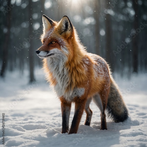 Fototapeta premium A glowing spirit fox with multiple tails, its ethereal body radiating light,...