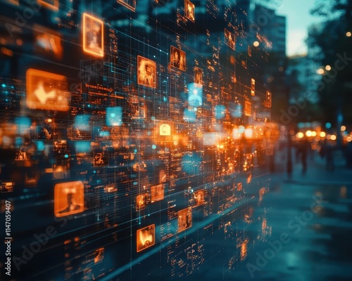 © Nawarit, Fototapeta premium A glowing video thumbnail displaying comments from new connections, captured in a sunny studio