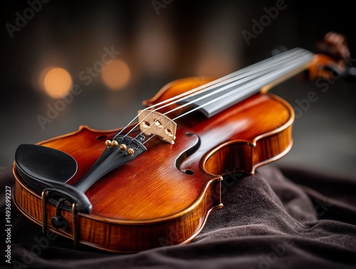© Hayijnum, Fototapeta premium A glowing violin rests serenely