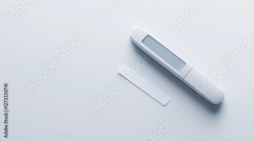 Naklejka premium A glucose meter with a clean test strip ready for use. Featuring health...