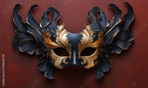 © TheoTheWizard, Naklejka premium A gold and black mask with gold trim