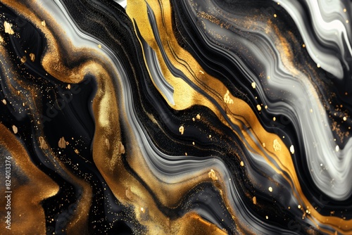 © Imaginary Capture, Obraz premium A gold and black swirl pattern with gold glitter
