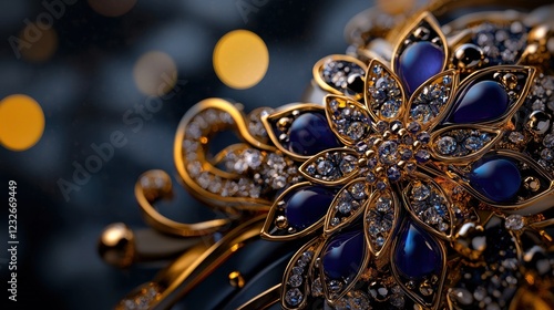 © Formoney, Fototapeta premium A gold and blue flower with many small blue gems