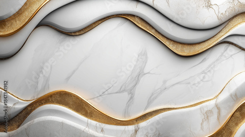 © Gabriela, Obraz premium A gold and white wave pattern on a white background