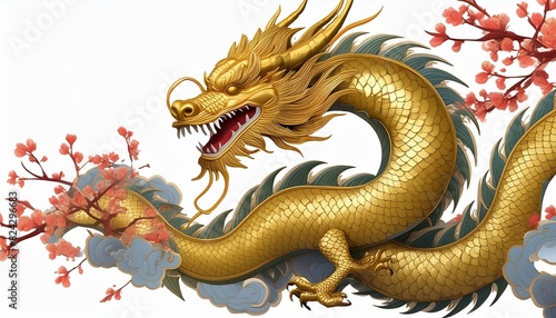 © Mom, Obraz premium A gold dragon with red flowers on its back