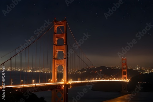 © Shoaib, Fototapeta premium A gold en gate bridge night view