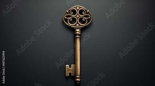 © Wonderful Studio, Obraz premium A gold key with a design on it