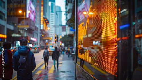 © Plaifah, Fototapeta premium A gold price graph on a billboard in the city center, catching the attention of passersby