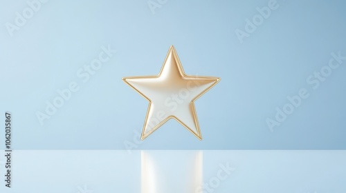 Fototapeta premium A gold star is on a blue background. The star is shiny and stands out against the blue background
