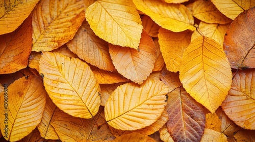 Fototapeta premium A golden canvas, adorned with intricate patterns of leaves, whispering tales of autumn's gentle touch.