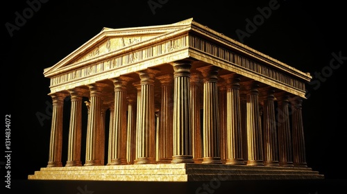 © Ariestia, Fototapeta premium A golden classical temple stands against a dark background gracefully