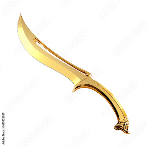 Naklejka premium A golden curved blade dagger with an ornate hilt