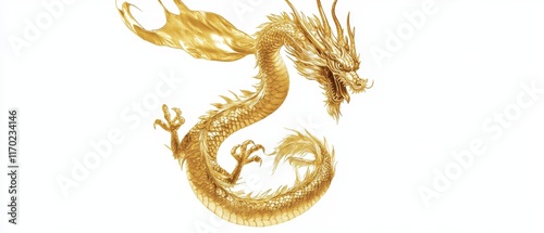 © Mufida's Gallery, Obraz premium A golden dragon. golden dragon on white background